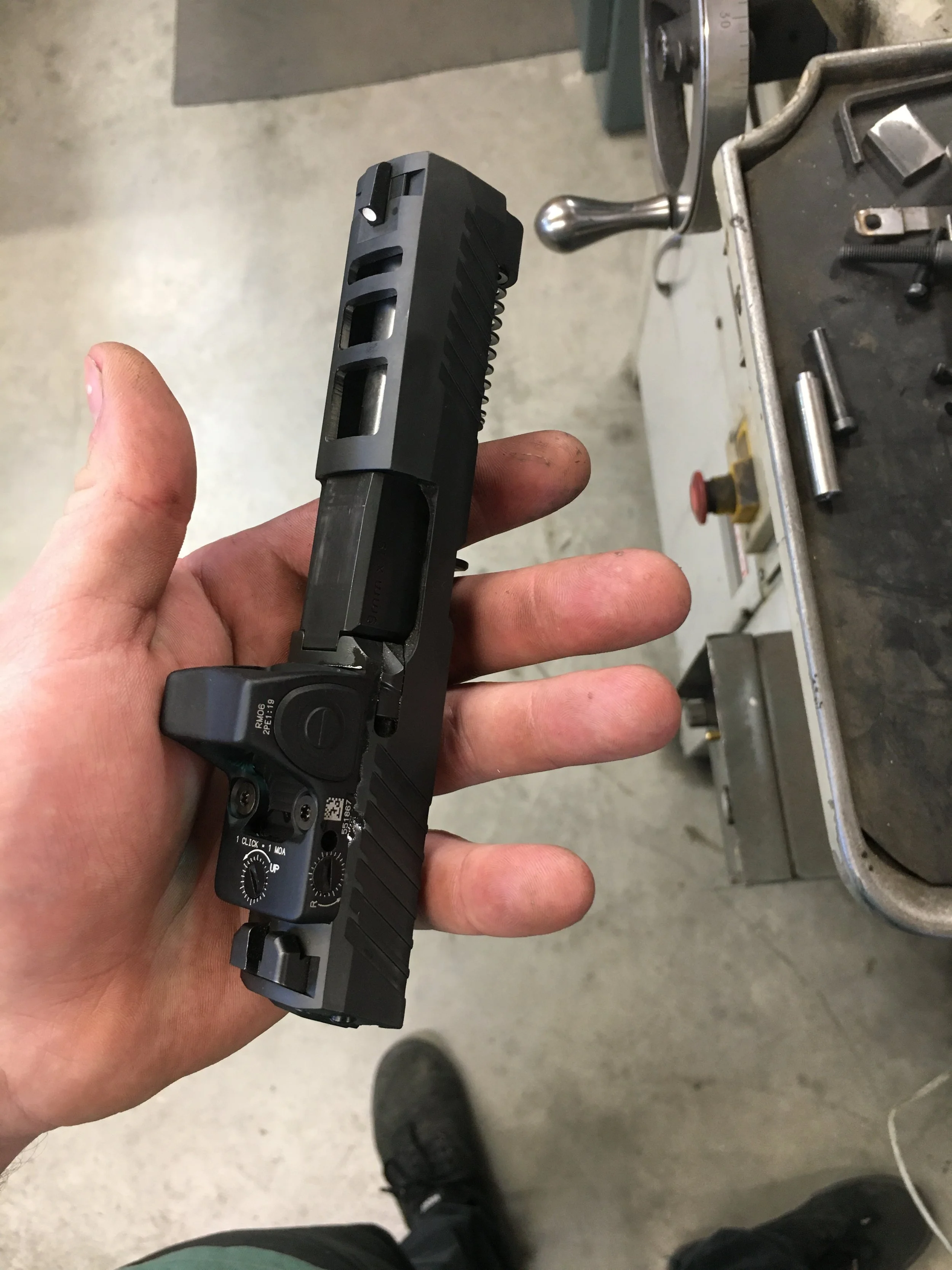 We offer top quality hand-fitted pistol builds, customization, or just plain old repair. Everything from ground up open class 2011 builds down to optic cuts and slide porting for carry guns. Let us know what we can make for you